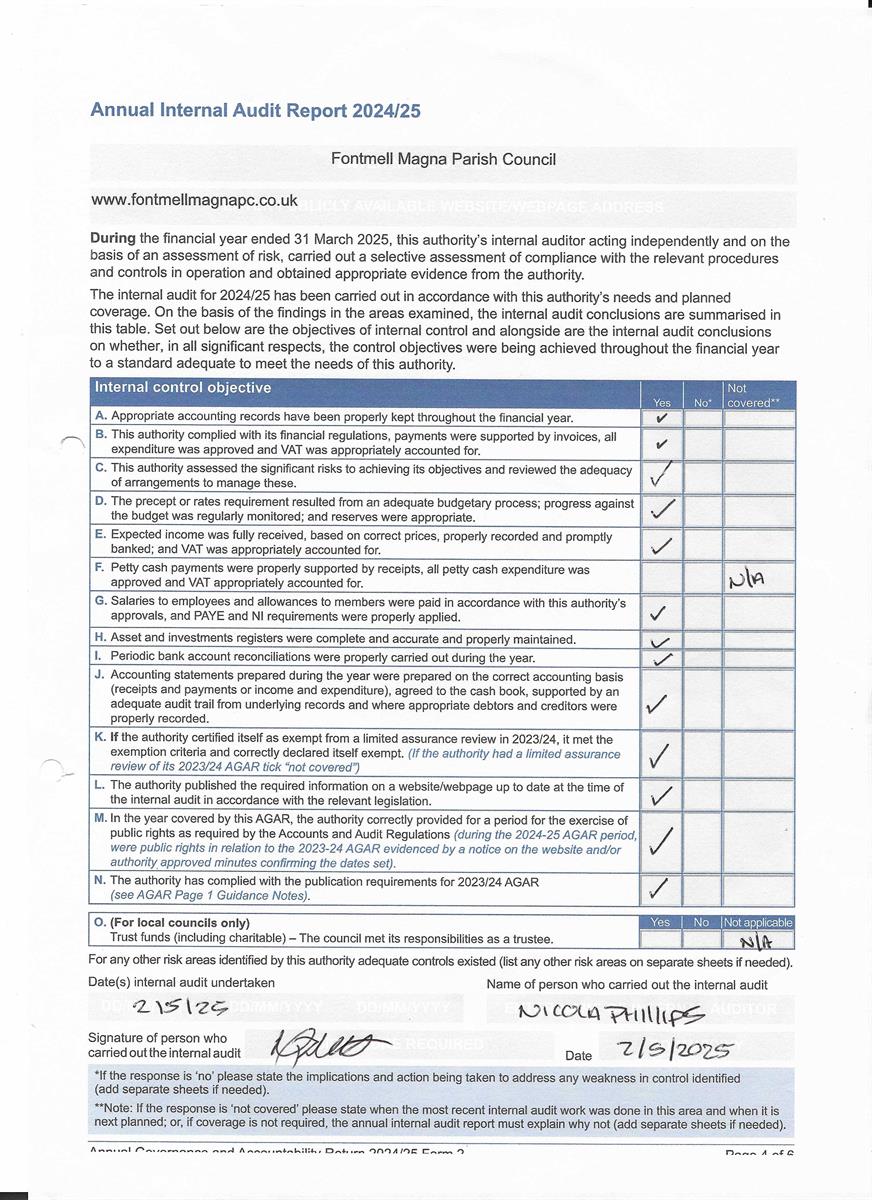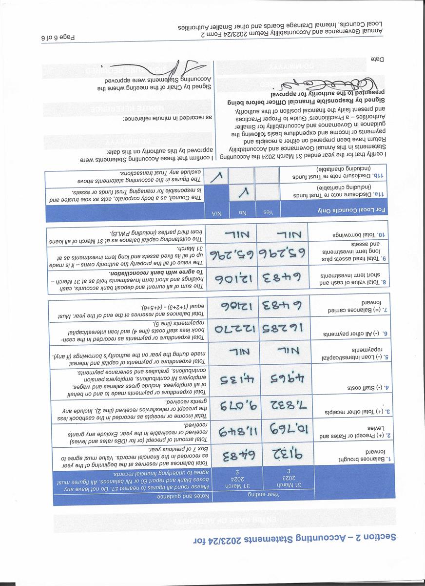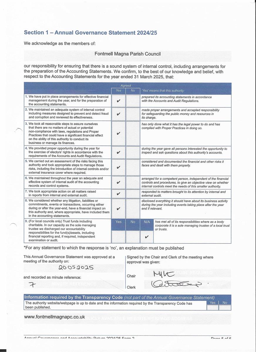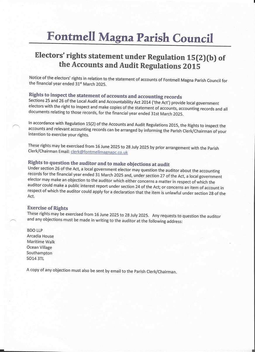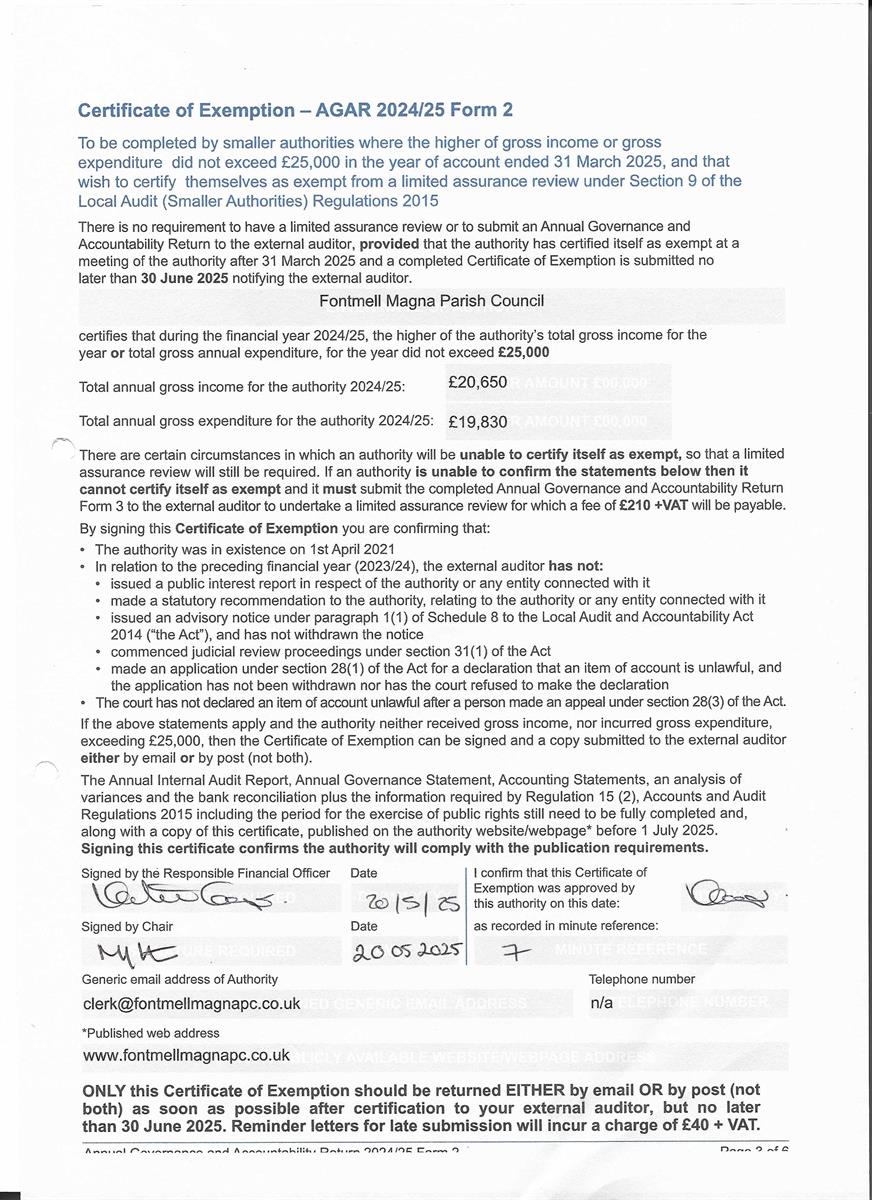 Notice of Exercise of Public Rights 2024/25Certificate of Exemption 2024/25Annual Internal Audit 2024/25Annual Governance Statement 2024/25Accounting Statements 2024/25
